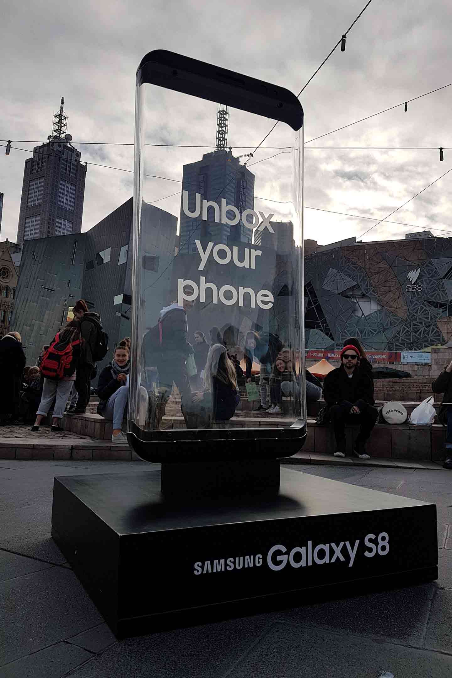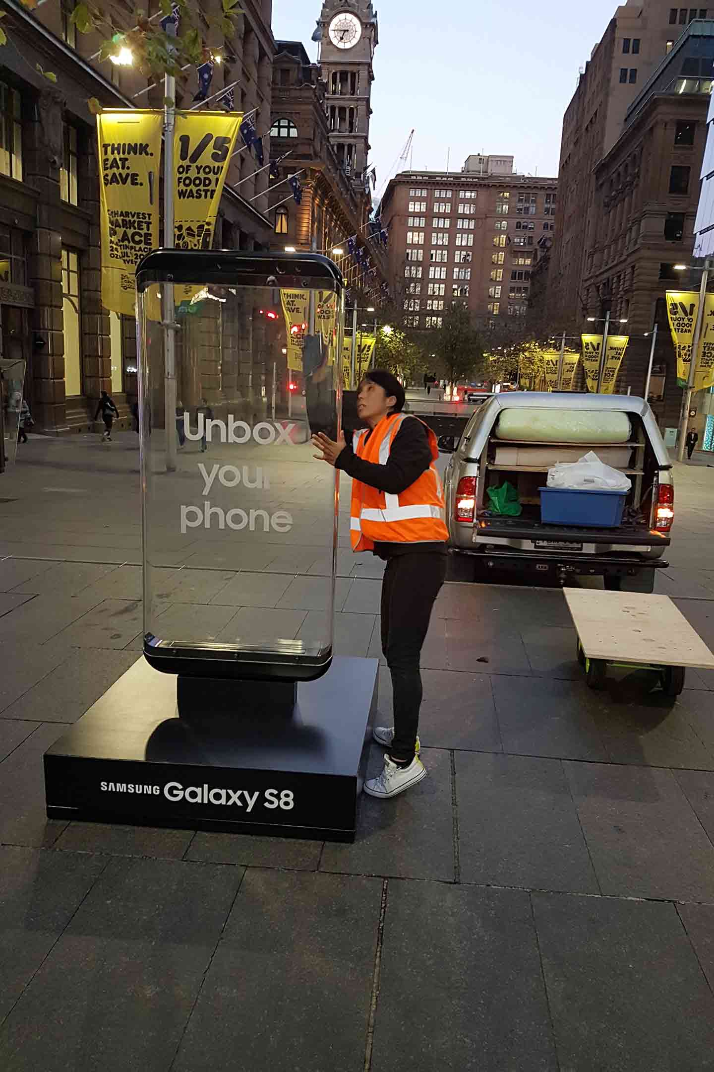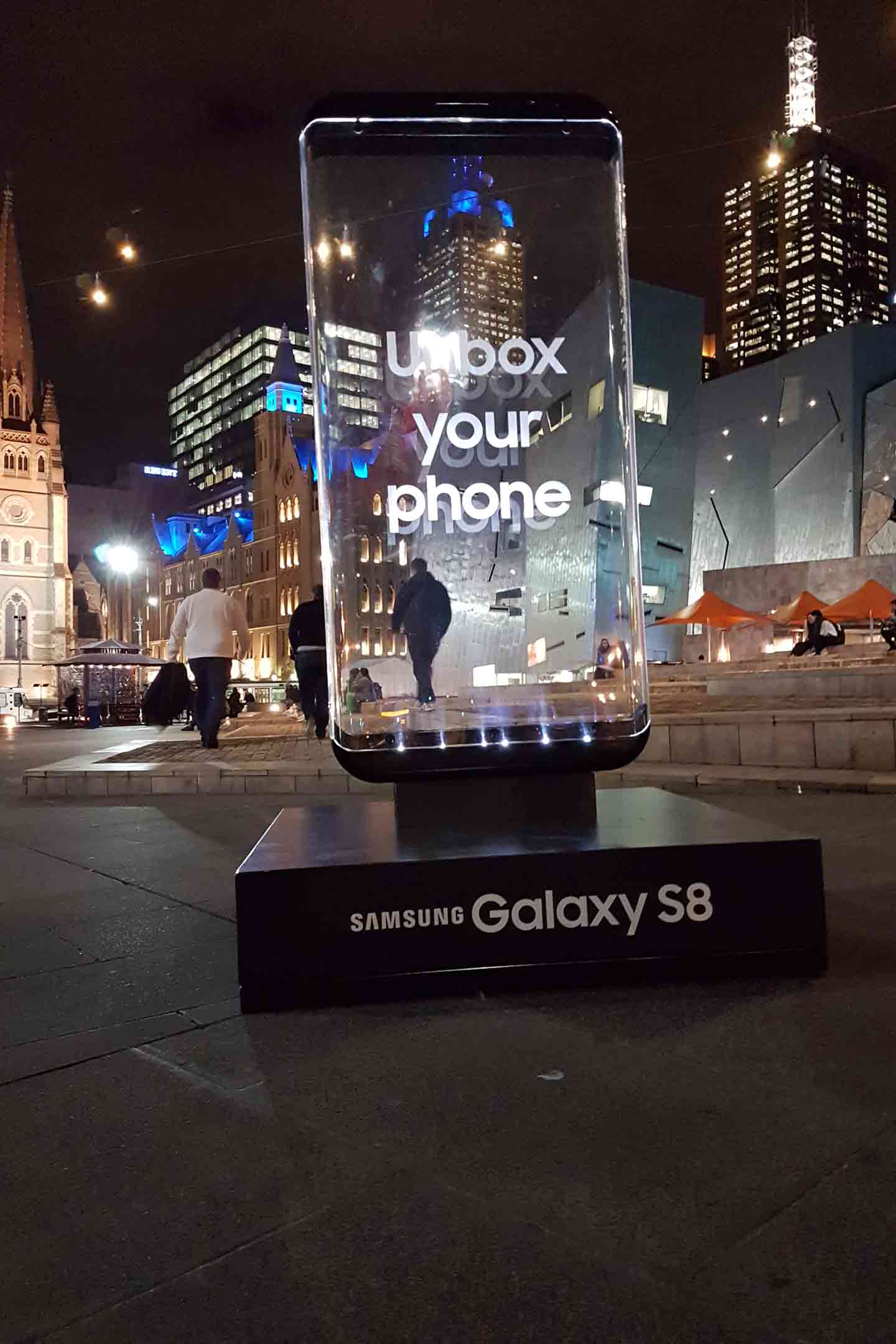 Part of the Unbox Your Phone campaign for the Samsung Galaxy S8, we produced a life-size version of the phone. Creating an effect and ambiance through lighting and a transparent view to the city scape.